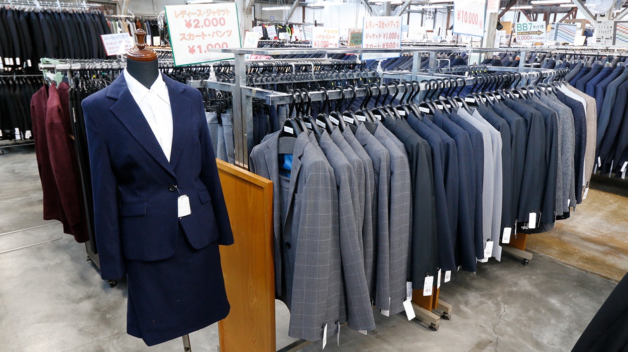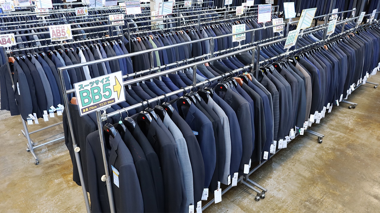 一見すると入りにくい印象を受けるかもしれませんが、週末には第二駐車場まで満車になるほど混雑する、人気のスーツアウトレット店です。ブランドは選べませんが、低価格でサイズも豊富なスーツが揃っているため、頻繁にスーツを買い替える方におすすめです。