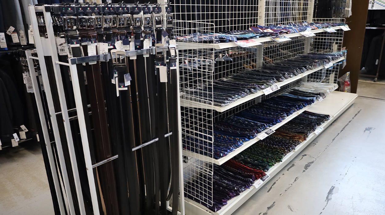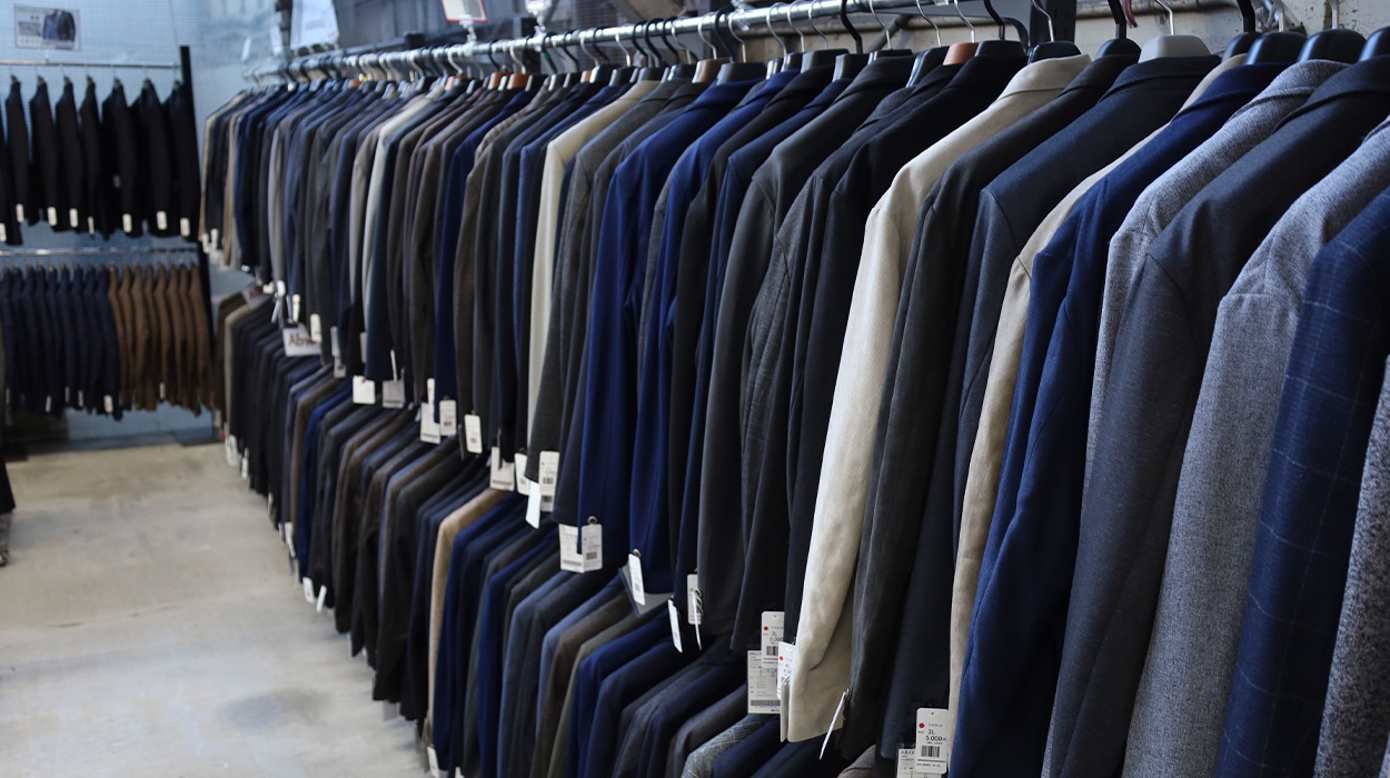 広い店内にはスーツを中心にジャケット、スラックス、コートなど5,500点以上の商品がぎっしり!